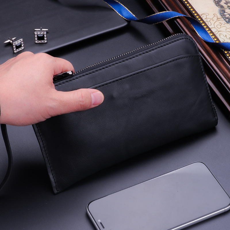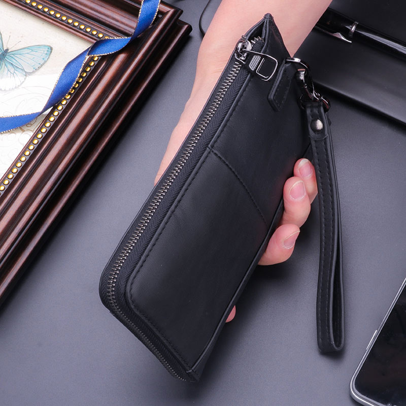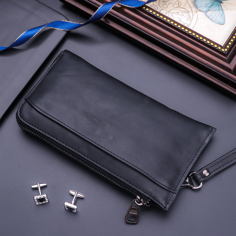 Handbag men's wallet long edition genuine leather grab bag men's mobile phone bag large capacity first layer cowhide light luxury small clip bag