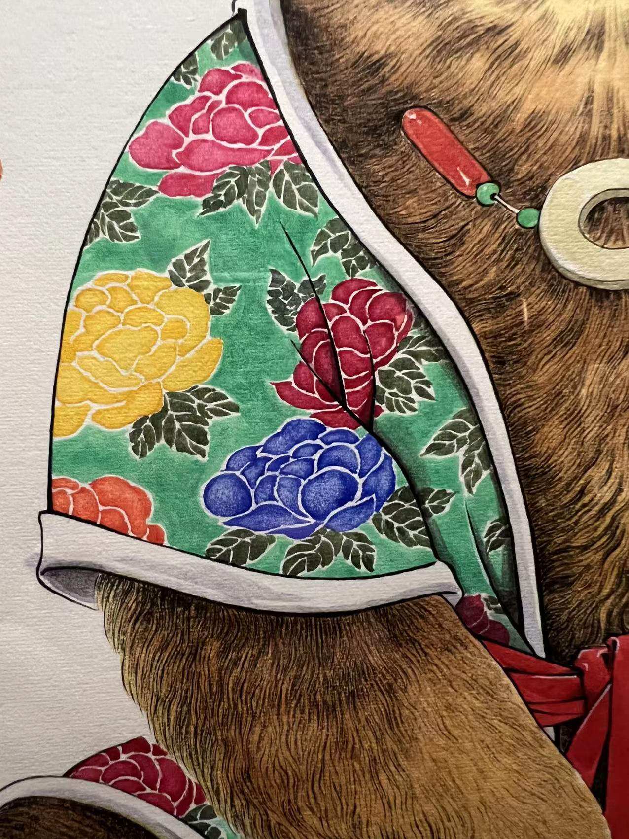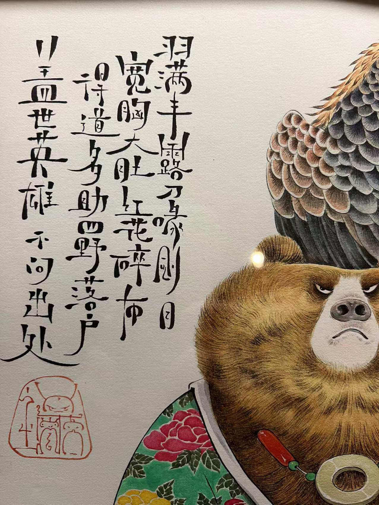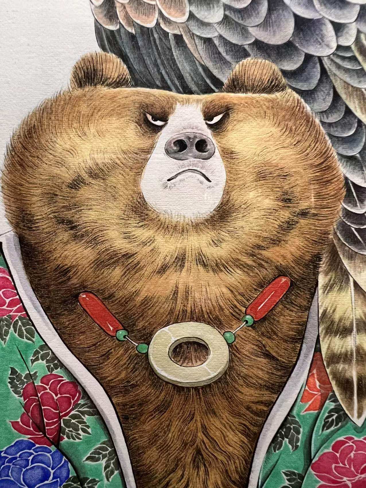 Scum Bear Original Zen Toad office Home Art Microspray Decorative Painting Eagle Bear Fighting Likeu Red Beech Wood Frame