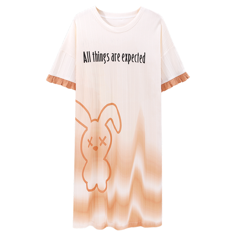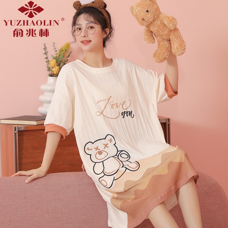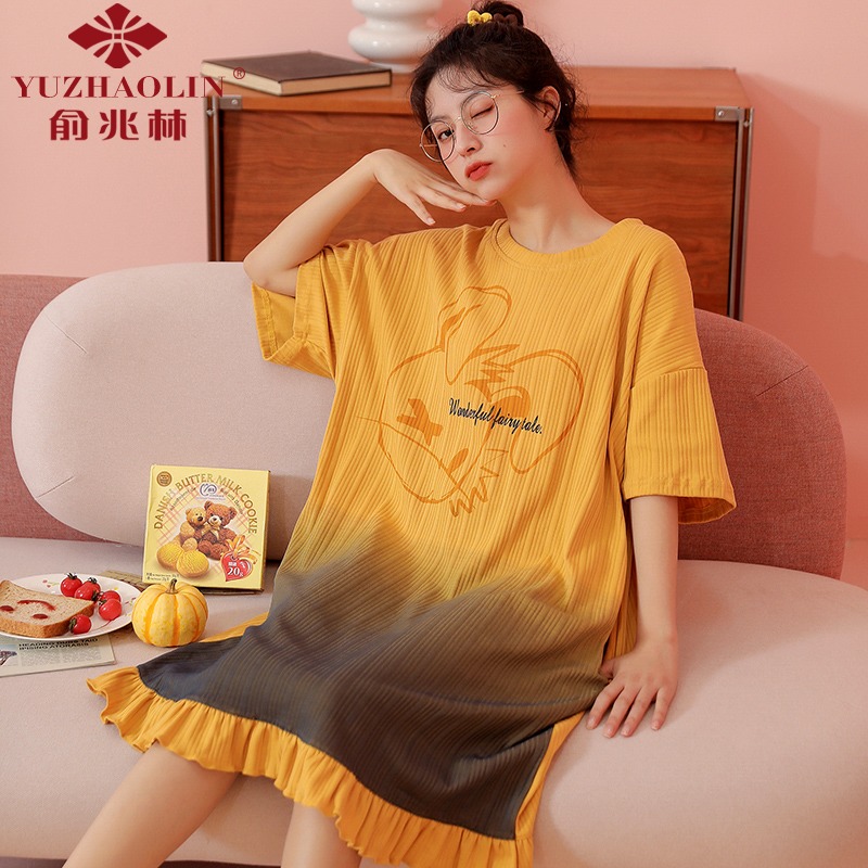 Yu one trillion Lin Pure Cotton Sleeping Skirt Woman Summer Student Home Dress Cute And Thin Short Sleeve Loose Pregnant Woman Sleepwear Spring Fall