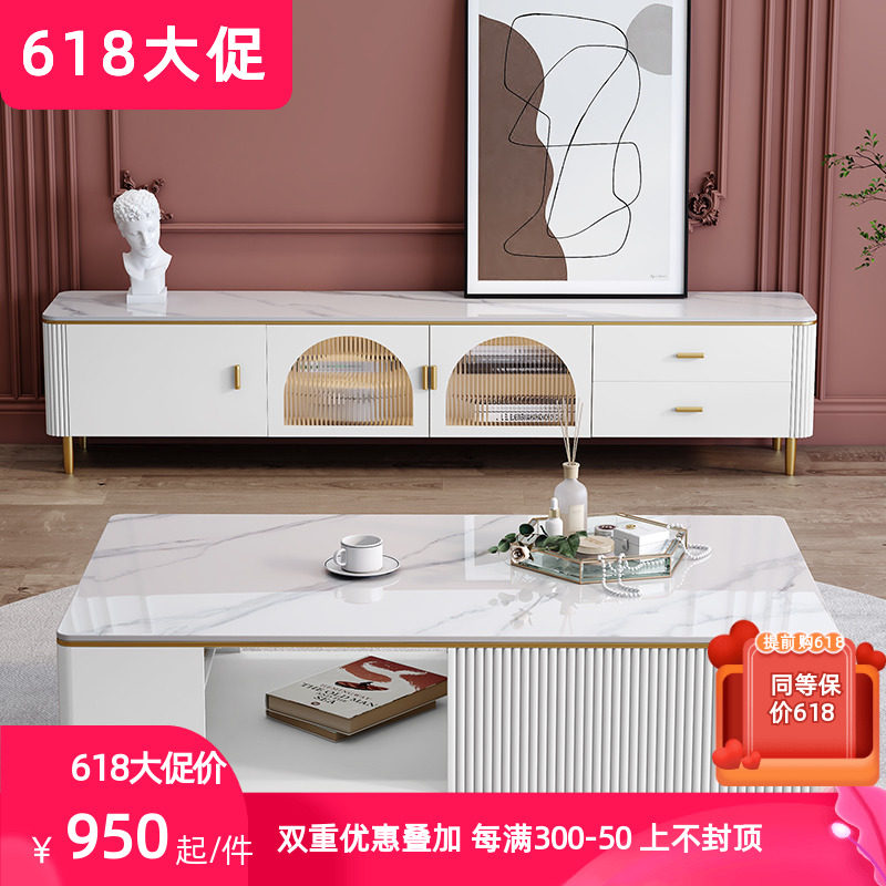 Bright Light Rock Plate TV Cabinet Tea Table Combination Modern Minima Living Room Home Nordic Small Family Marble Light Extravagant
