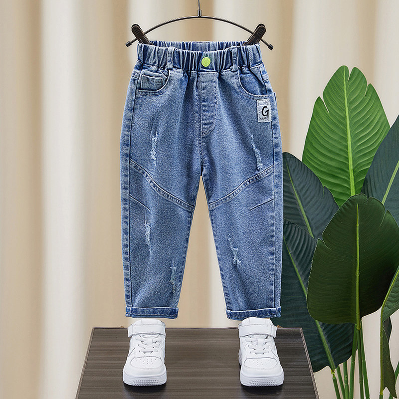 Boy jeans 2022 new foreign spring children Broken Pants for children Spring-style Korean version of the Han edition Foreign Pie Casual Pants