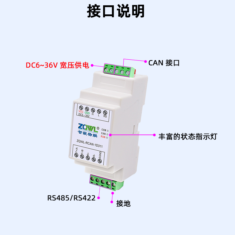 Rail mounting CAN turn 485 RS422 protocol converter CANBUS turn serial port communication module CAN bus turn serial port CAN turn 422 bi-directional overpass industrial grade MOD
