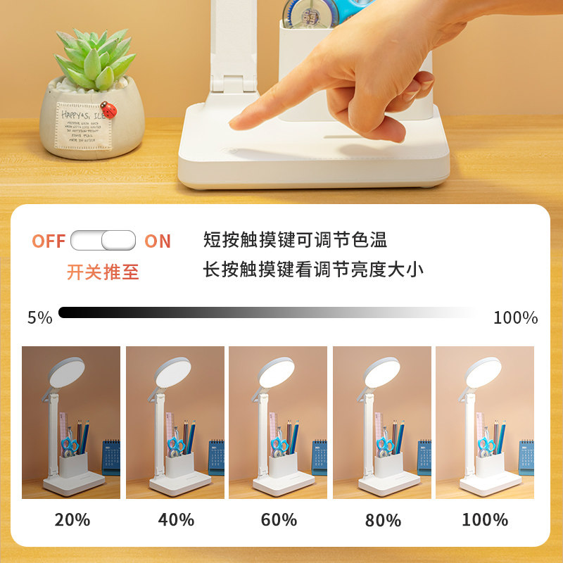 Single-head desk lamp (5W plug-in model without battery) Single-head desk lamp (5W rechargeable and plug-in dual-use model) three-speed dimming and color matching Long head lamp with pen holder (5W charging and plug-in dual-use model) three-speed dimming and color matching Long