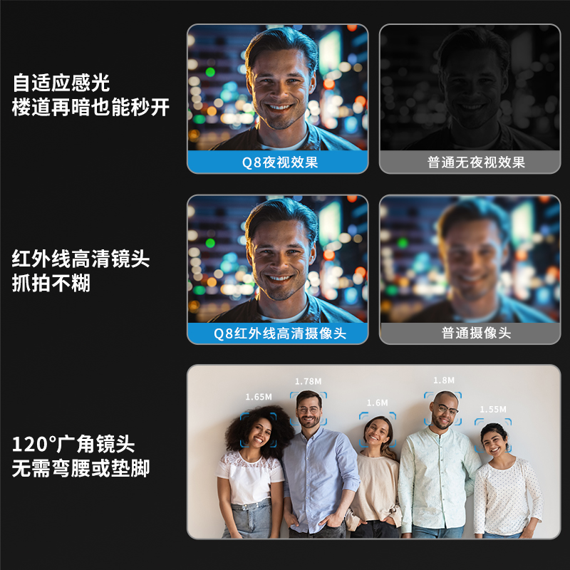 Elegant Black (Standard Edition) Remote Temporary Key + Guidance Installation Coffee Gold (Standard Edition) Remote Temporary Key + Guidance Installation Black or Coffee (Standard Edition) Remote Temporary Key + On-Site Installation Elegant Black (Cat's Eye Edition) Remote Monitoring + Door Opening Record + Guidance Installation Coffee Gold (Cat's Eye Edition) Remote Monitoring + Door Opening Record + Guidance Installation Black or Coffee (Cat's Eye Edition) Remote Monitoring + Door Opening Record + On-Site Installation Elegant Black (Intercom Version) 24h Monitoring + Real-time Video Intercom + Guidance Installation Coffee Gold (Intercom Version) 24h Monitoring + Real-time video intercom + guidance installation Black or coffee (intercom version) 24h monitoring + real-time video intercom + on-site installation Elegant black (face version) brush face unlocking + 24h monitoring + video intercom + guidance installation Coffee gold (face version) brush face unlocking + 24h monitoring + video intercom + guidance installation Black or coffee (face version) brush face unlocking + 24h monitoring + video intercom + on-site installation Q8 smart lock purchase intelligence - functional difference