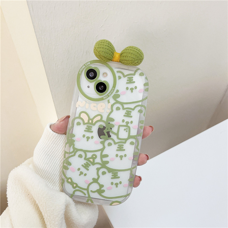 ins cute green little tiger butterfly knot applicable iphone13pro max apple 12 phone protection shell iphone11 silicone x xsxr soft 13