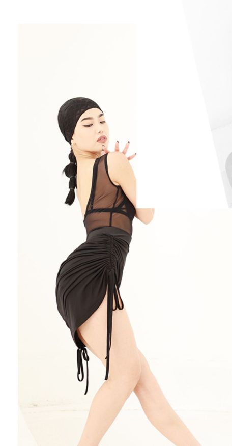 DUYQ (plaid weave road) black simple mesh beauty back top without chest pad GB female Latin dance 011