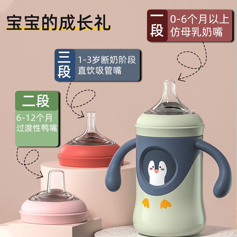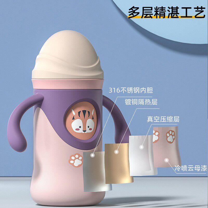 A bottle of multipurpose insulation feeding bottle child wide aperture anti-flatproof gas resistant to fall baby 316 stainless steel straw cup bottle-Taobao