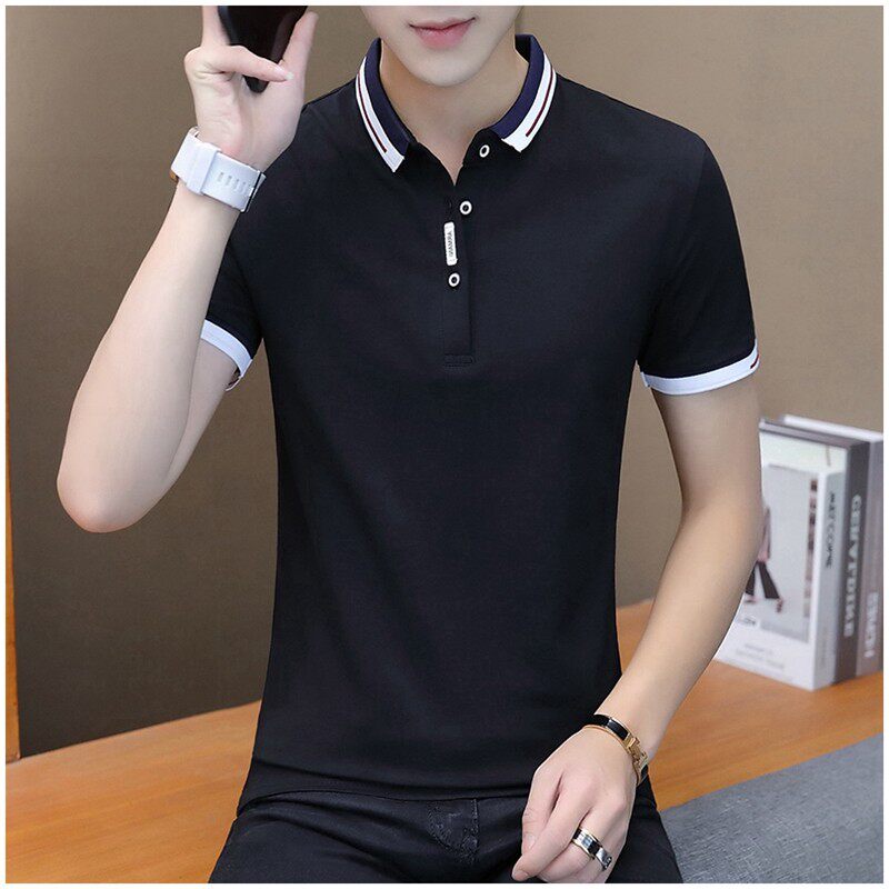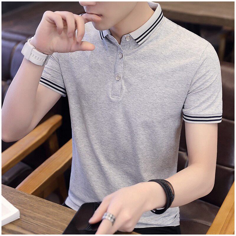 Tide brand cotton short-sleeved T-shirt men's summer thin section trend casual men's t-shirt lapel Paul POLO shirt top