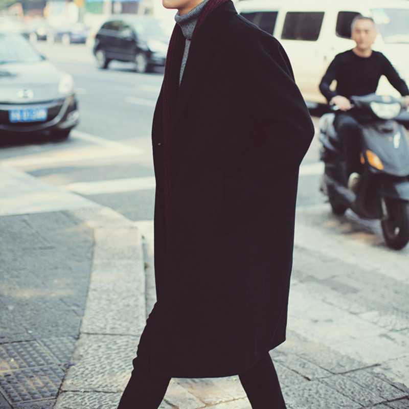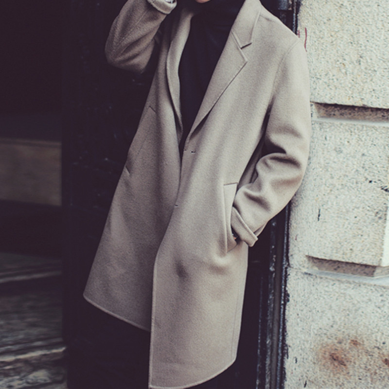 Double-sided cashmere coat men's spring and autumn new Korean version of the trend of self-cultivation men's jacket long version woolen windbreaker