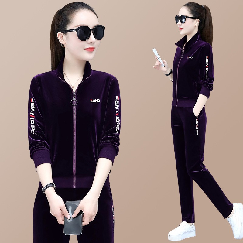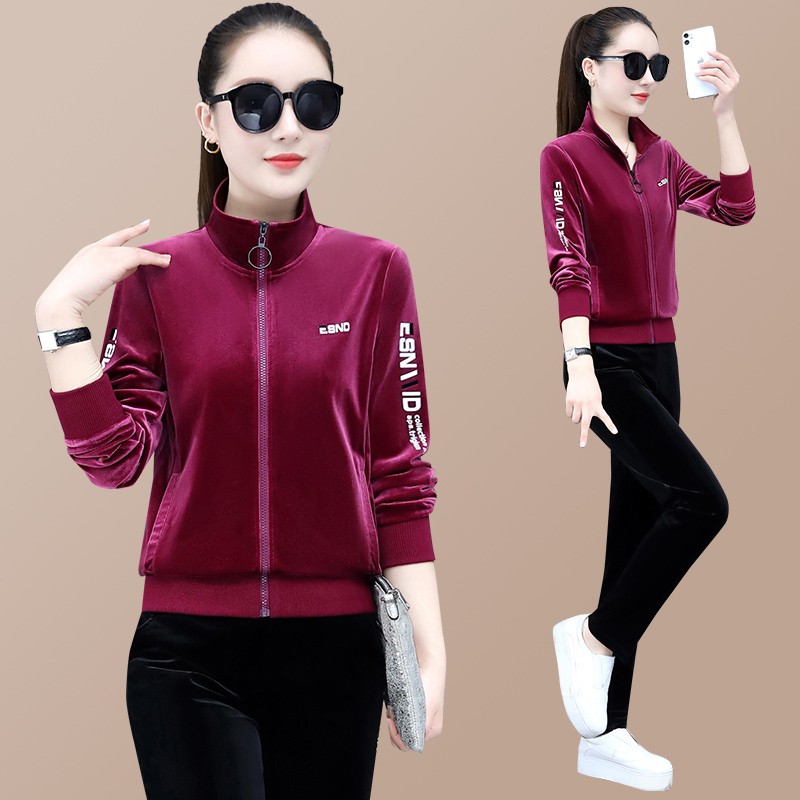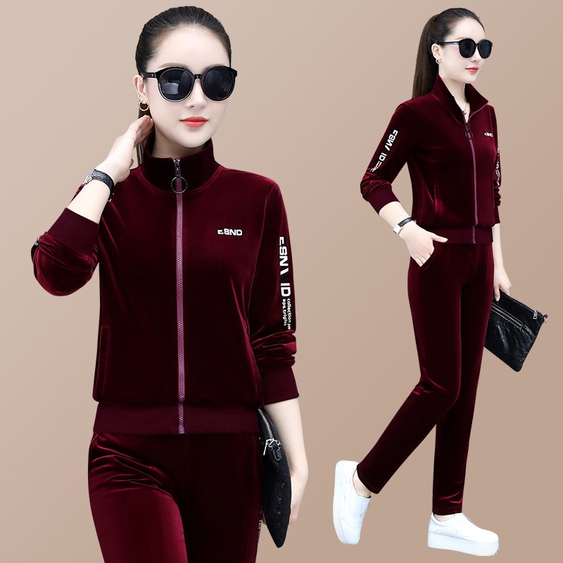 Golden Velvet Sports Suit Women Spring Autumn 2022 New Fashion Cardio-hoodie Middle-aged Casual Running Suit Clothing Two Sets