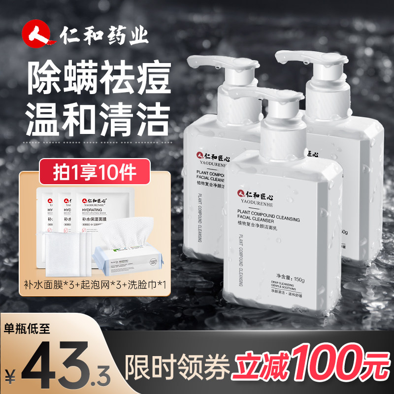 3 bottles of Renhe Ingenuity Amino Acid Facial Cleanser for Men's Whitening Moisturizing Oil Control Acne Skin Care Set