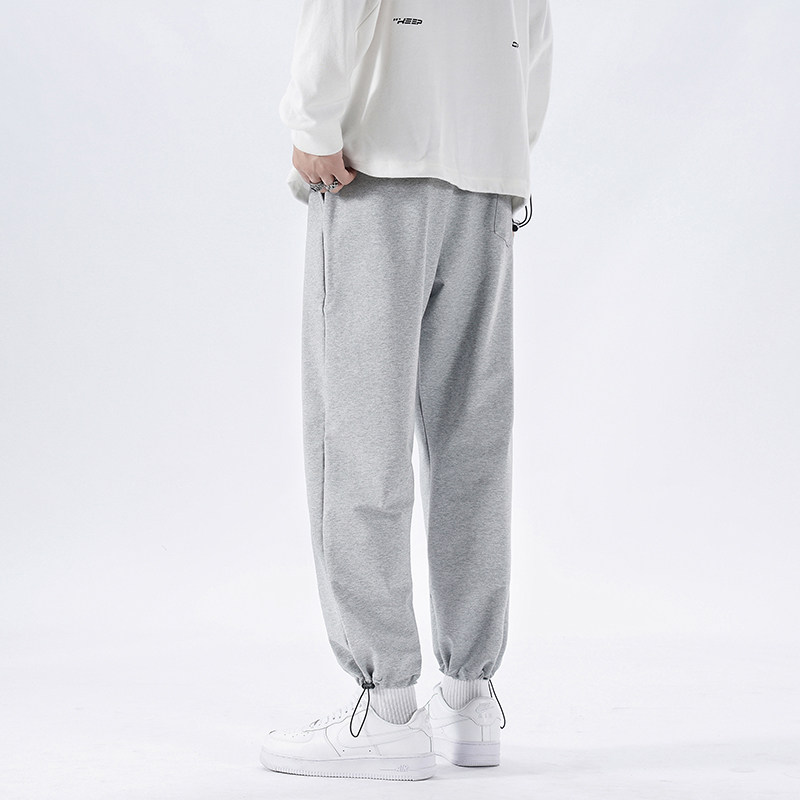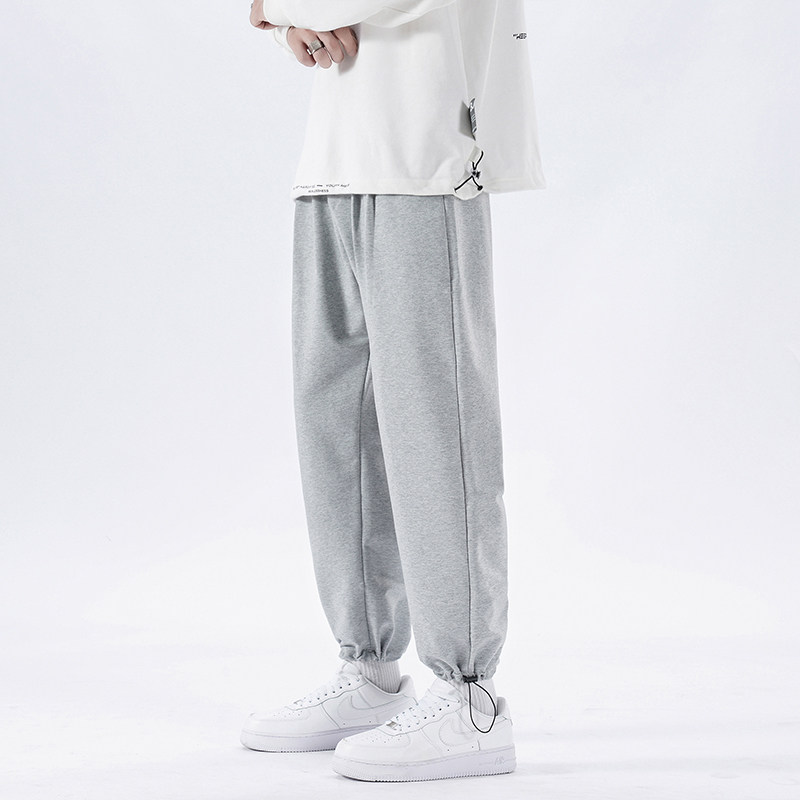 Sports Pants Male Grey Spring Summer Pumping Rope Bungles Pants Loose large size Fat Son Broadlegged Casual Pants Spring Autumn