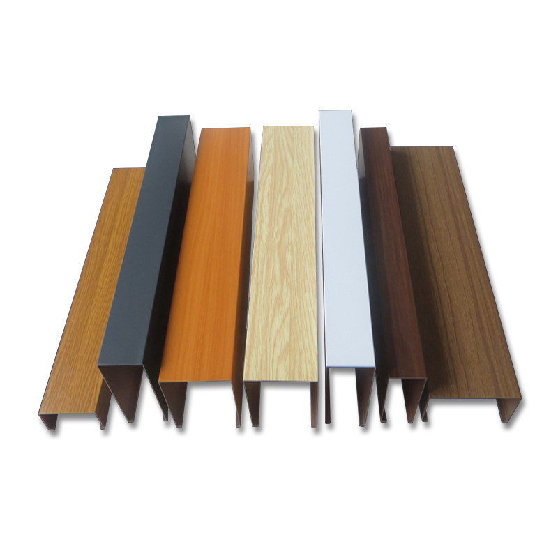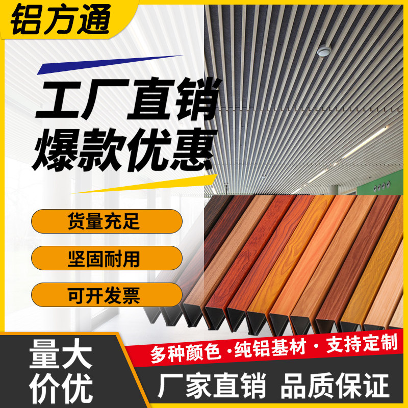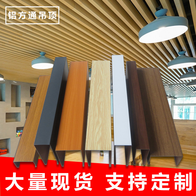Wood grain aluminum square pass ceiling U-shaped groove Aluminum grille office shopping mall aluminum square tube iron square pass ceiling decoration material