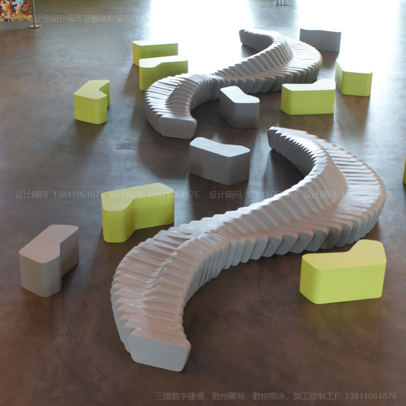 Shopping Hall Public Art Seat Glass Fiberglass Color Chair Theatre Hotel Lobby waiting for bench