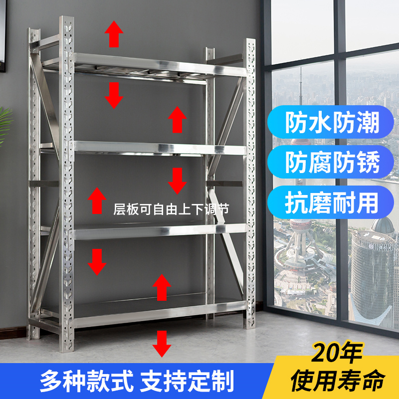 Stainless Steel Warehousing Shelf Shelshelf Warehouse Cold Garage Basement Adjustable Multilayer Commercial Heavy Shelving