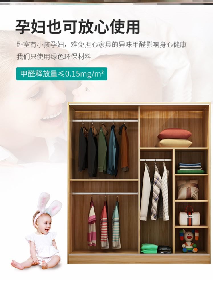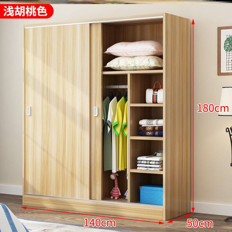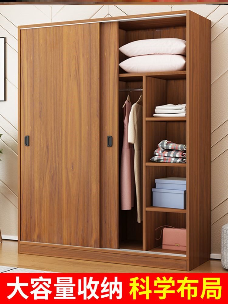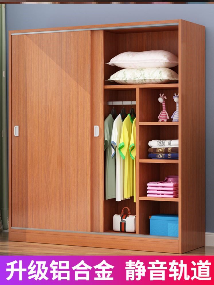Simple wardrobe modern minimalist home bedroom sliding door solid wood rental room economical children's hanging wardrobe 26