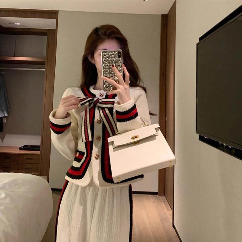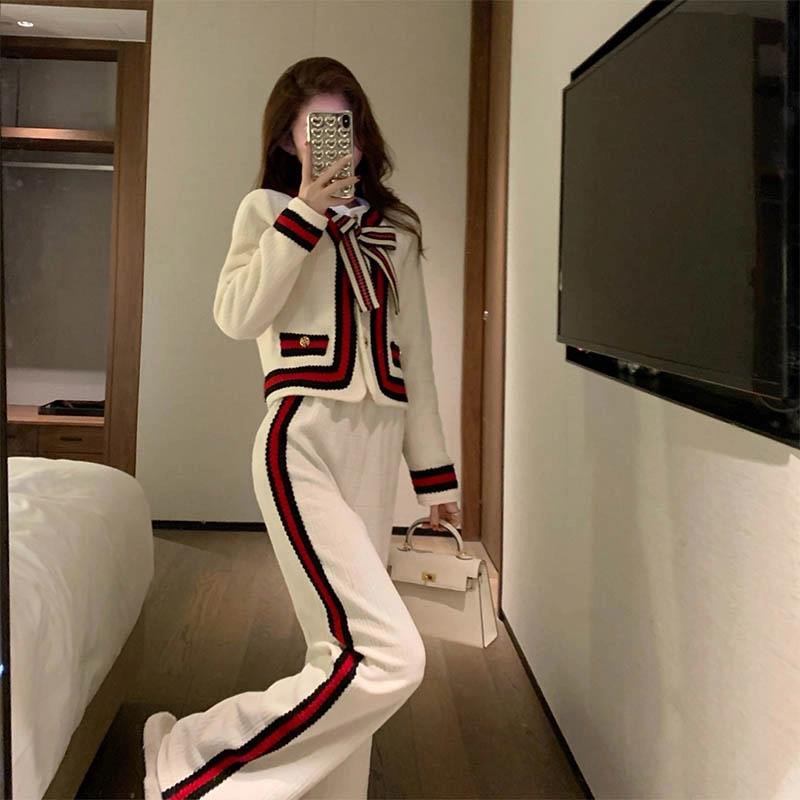White casual sportsweater small fragrant sweater knitted sweater two pieces of suit 2023 spring dress new women