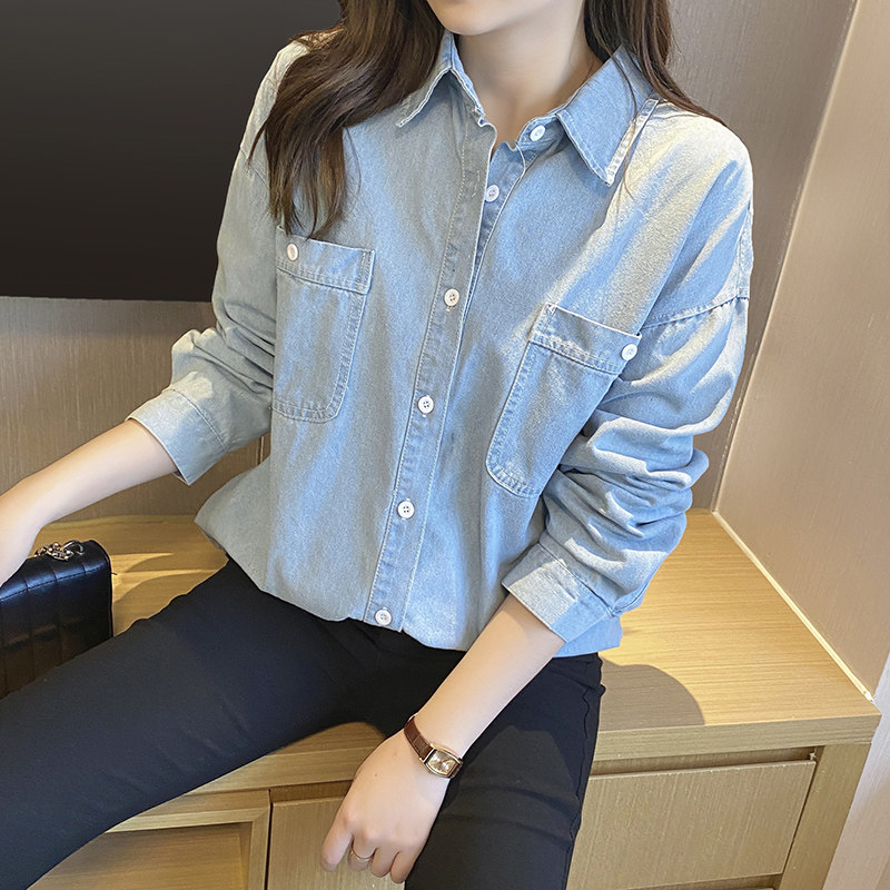 Blue denim shirt woman medium long version 2022 Spring autumn new Korean version loose long sleeve shirt jacket blouses