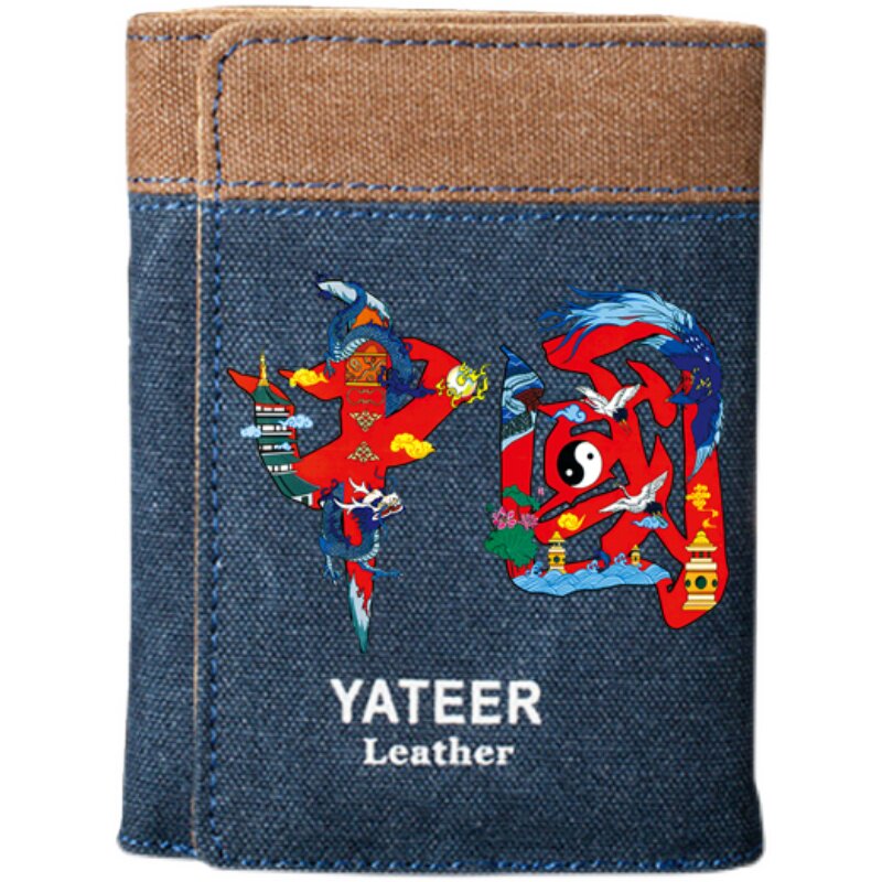 2022 new country tide China Wind wallet Men's young young start high school student money clip card bag boy little zero money bag
