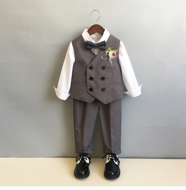Flower boy boy small suit suit Inron spring autumn baby age gown in handsome children's shirt waistcoat three-piece suit