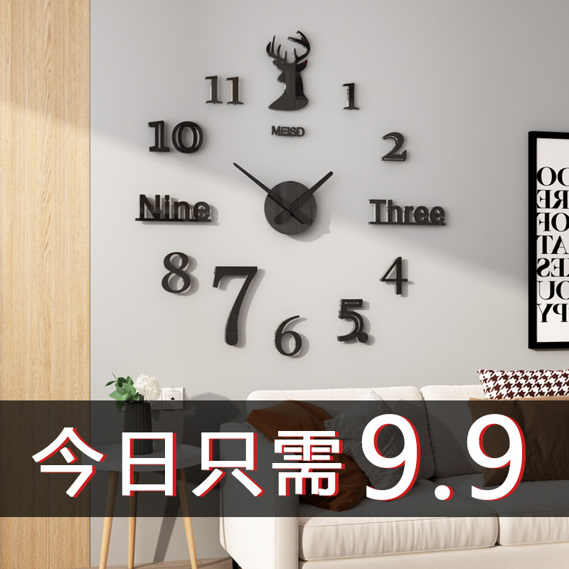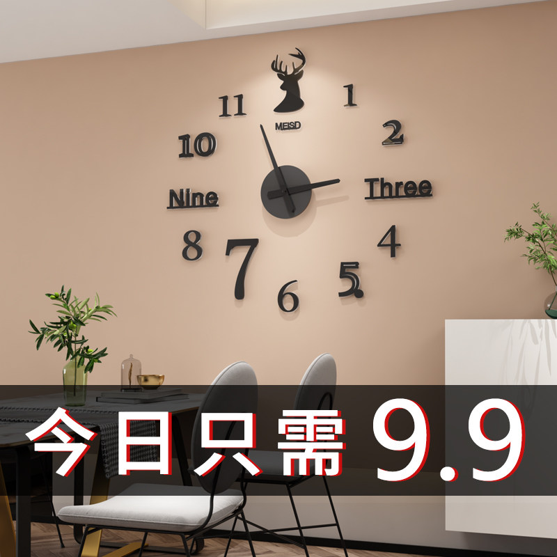 Watch clock hanging bell Living room Home Fashion 2021 new Punch Free Creative Clock Hanging Wall Mesh Red Decorative Quartz Clocks