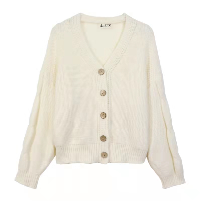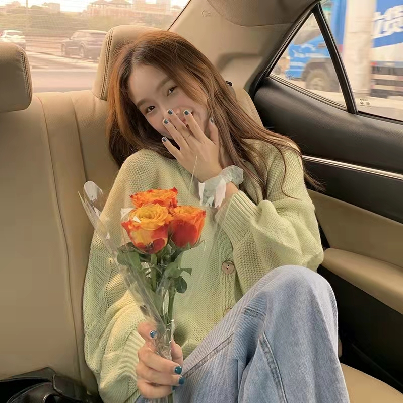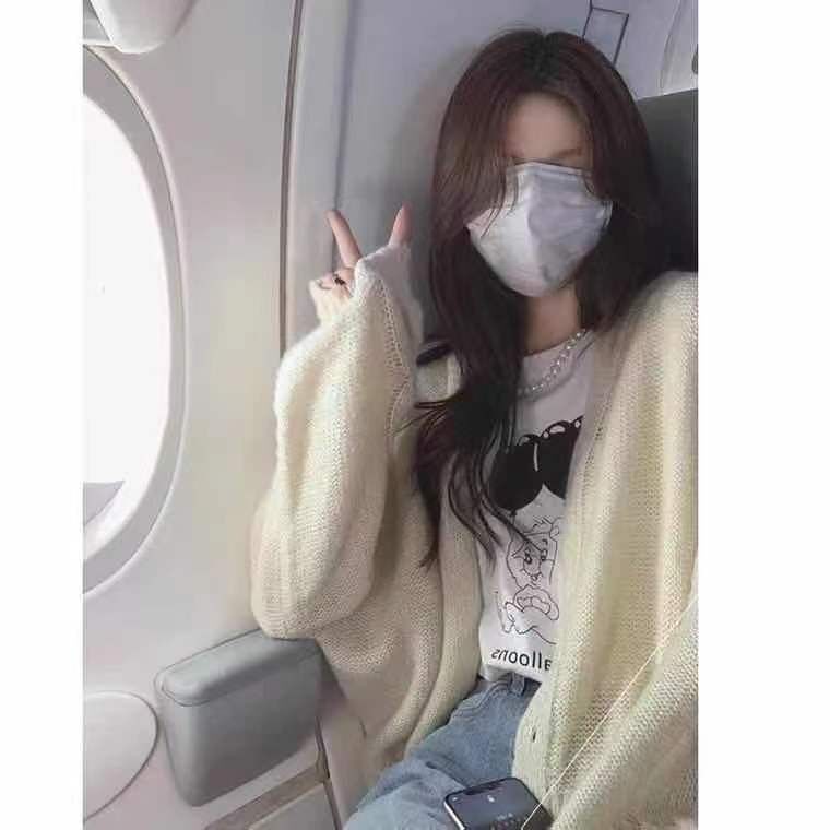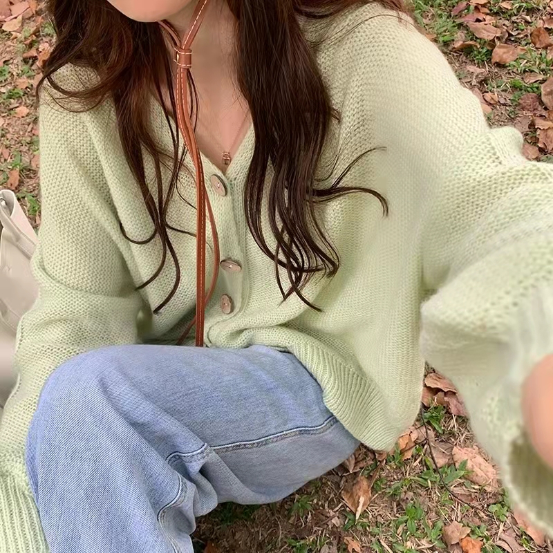 2022 Qing pure soft glutinous knit cardio-hoodie woman spring and summer new loose and lazy wind cute V collar jacket long sleeve blouse