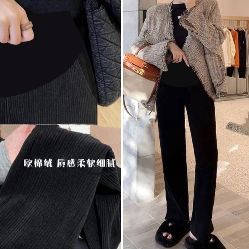 Pregnant woman pants spring and autumn outside wearing open fork small child chenille wide leg pants winter style with velvet thickened and beat bottom winter