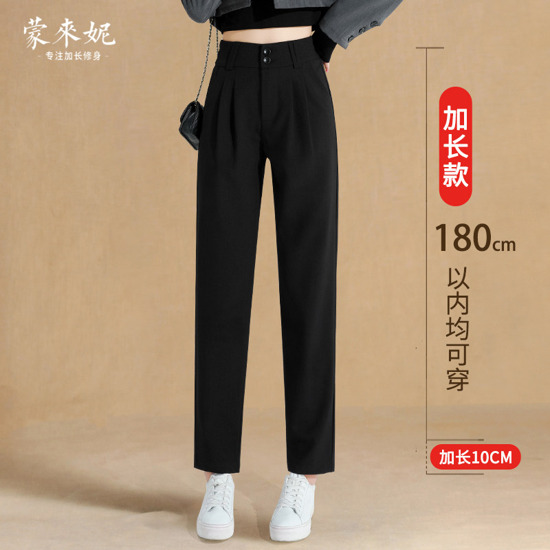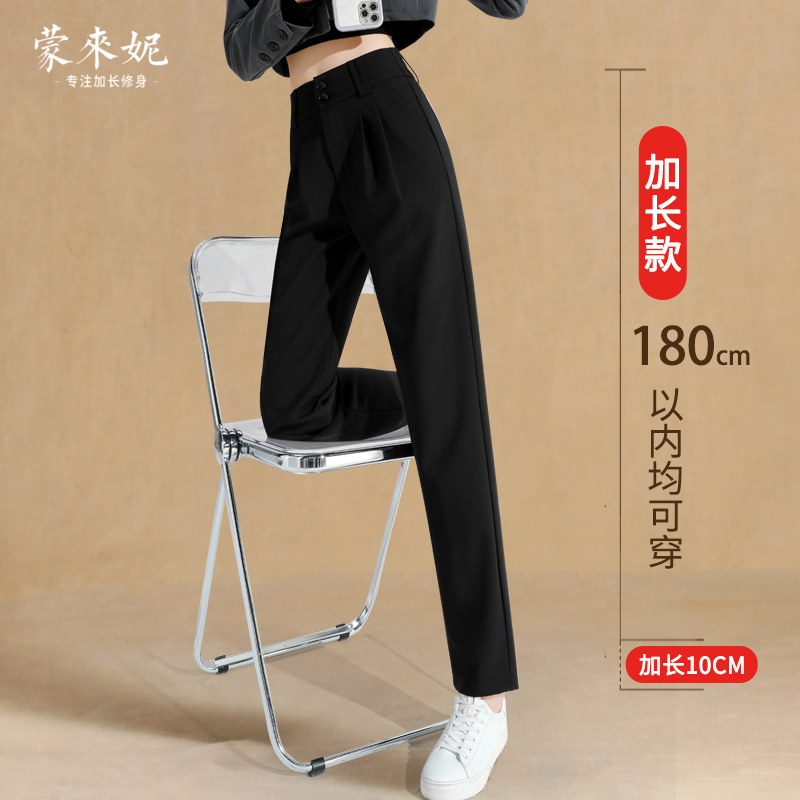 Lengthened suit pants women's straight high waist drape slim nine-point pants 170 spring and autumn tall casual cigarette pipe trousers
