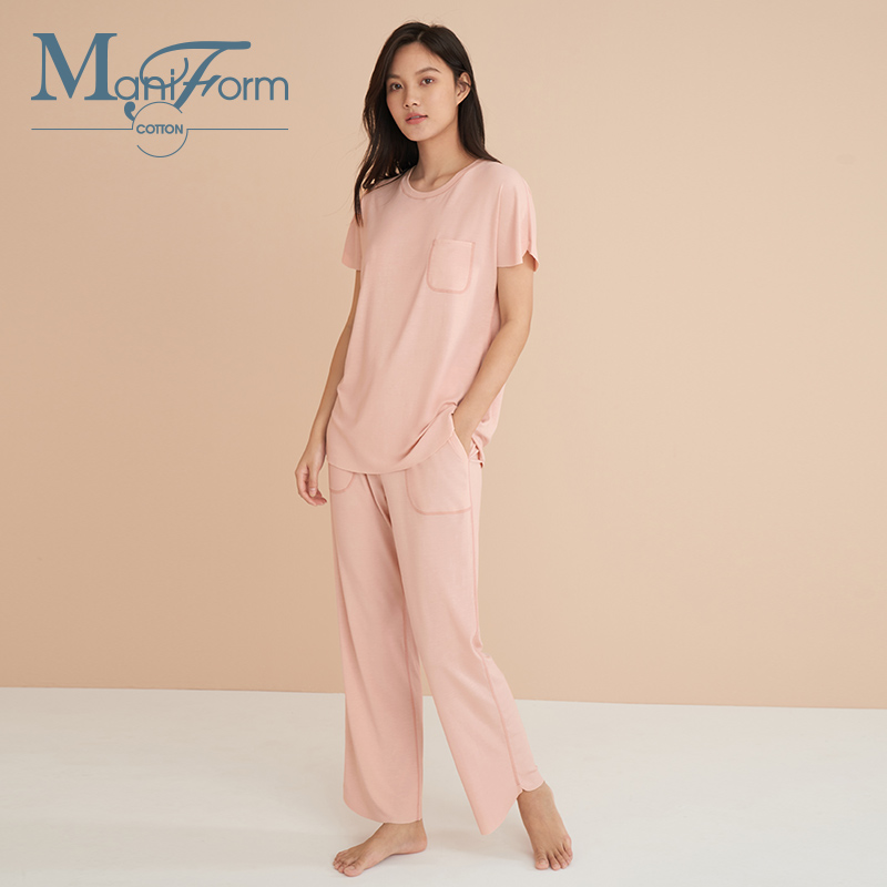 Maniform Cotton Life Modal Casual Cut Knit Side Pockets Crew Neck Pajamas Couple Suits Homewear