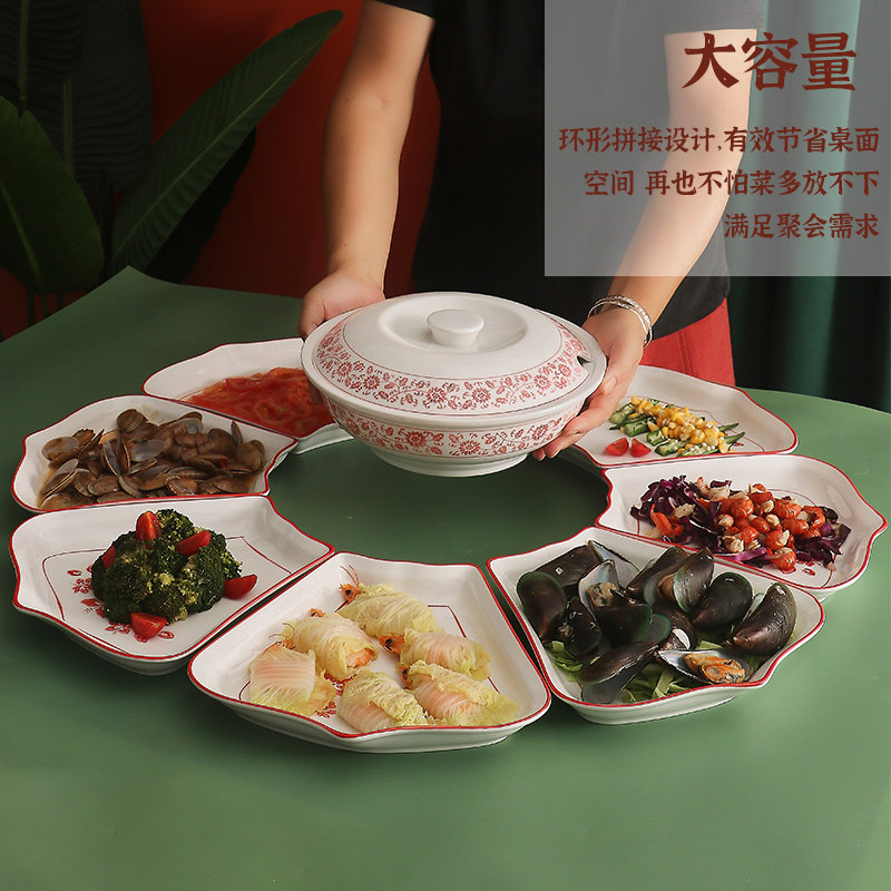 Netred Red Red Disk Dish Combined Family Banquet Set Household Ceramic Bowl Dish Family Dining Disk