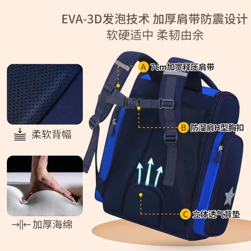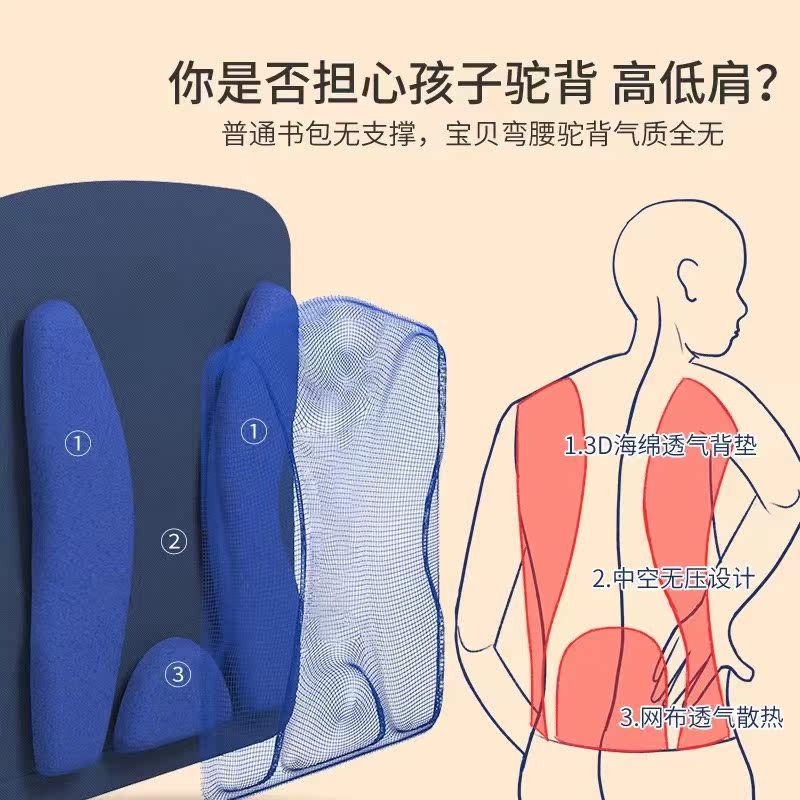 Children's Backpack Primary School School Bag One, Two, Three to Sixth Grade Ridge Protector Breathable Back Pad Lightweight and Waterproof This Year's New