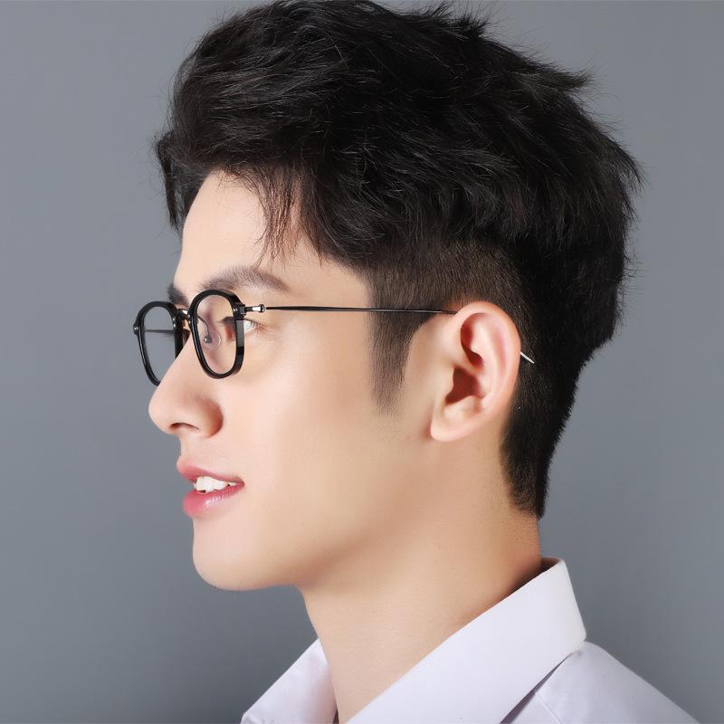 Glasses ultralight male myopia retro titanium frame female frame of Japanese plate blue frame fog color discoloration frame