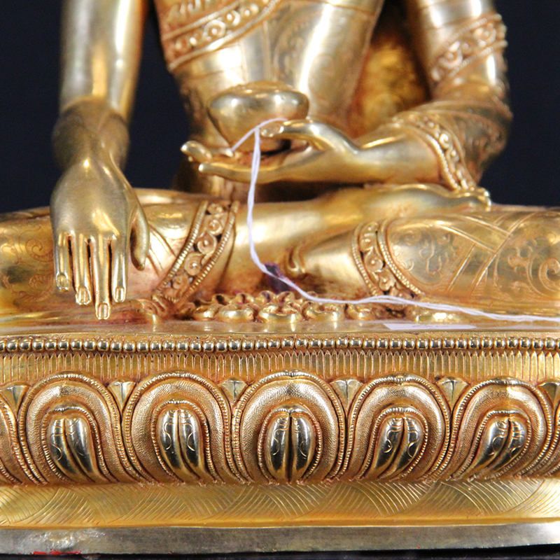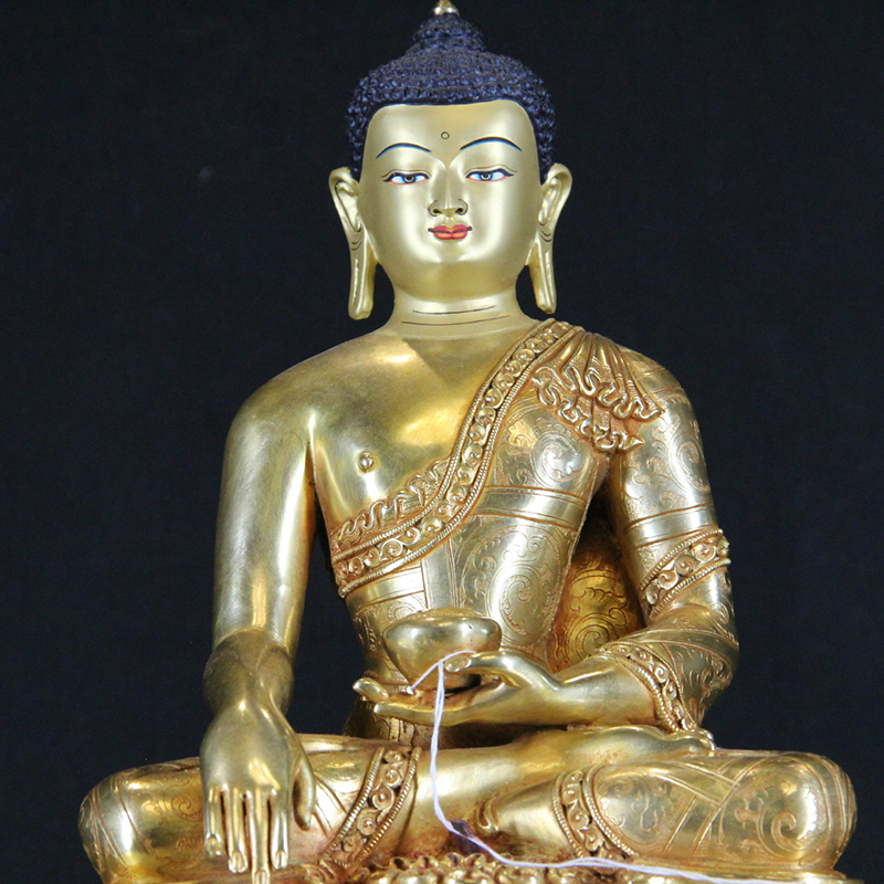 Nepal handmade Sakyamuni to create carthamoni red bronze with gold sculpted Sakyamuni Buddha statue high 28cm