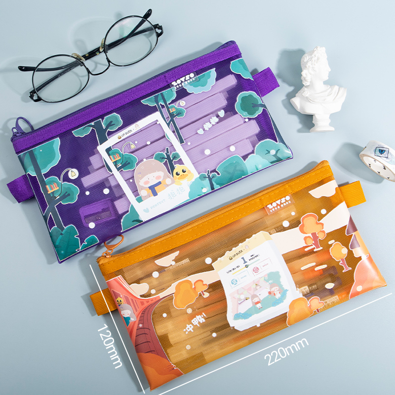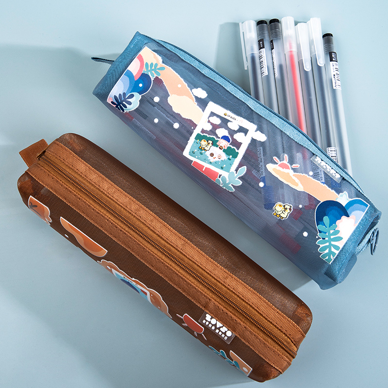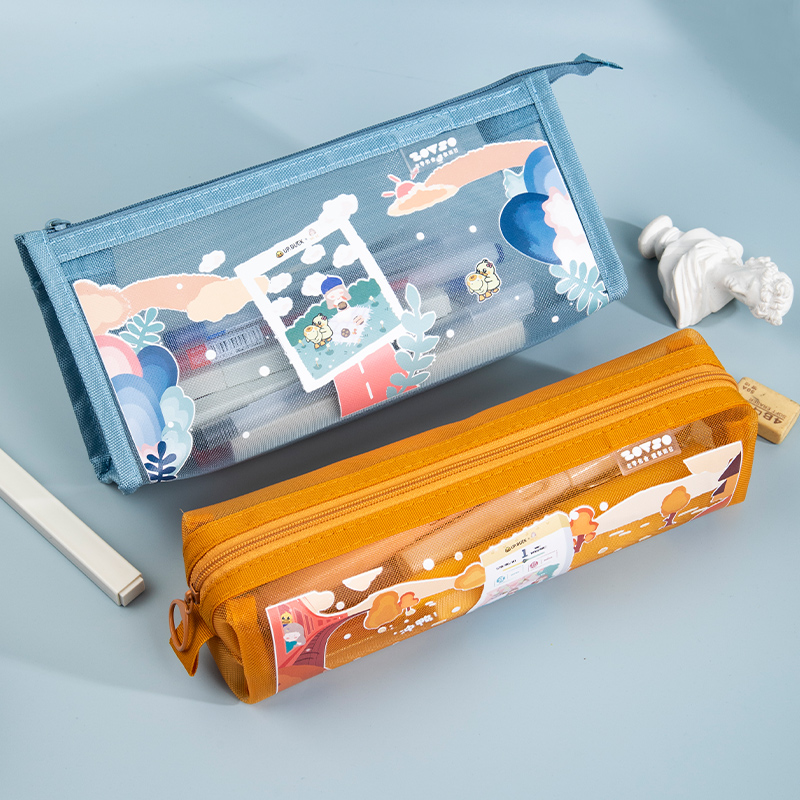 Transparent Stationery Pen Bag Junior High Girl High Face Value Girl Large Capacity Cute Mesh Yarn Lead Pencil Case Students Small Pencil Case Ins Lukewarm Wind Small Crowd Original Sandwich Stationery Bag University Examination
