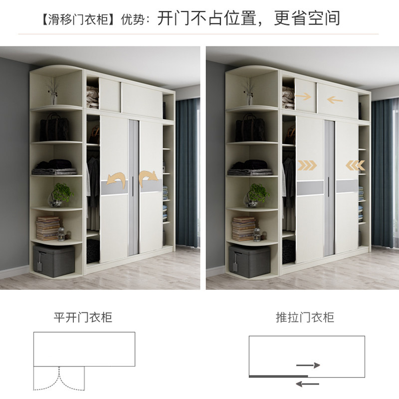 Light luxury sliding door wardrobe assembly home bedroom modern minimalist storage cabinet small apartment minimalist overall large wardrobe