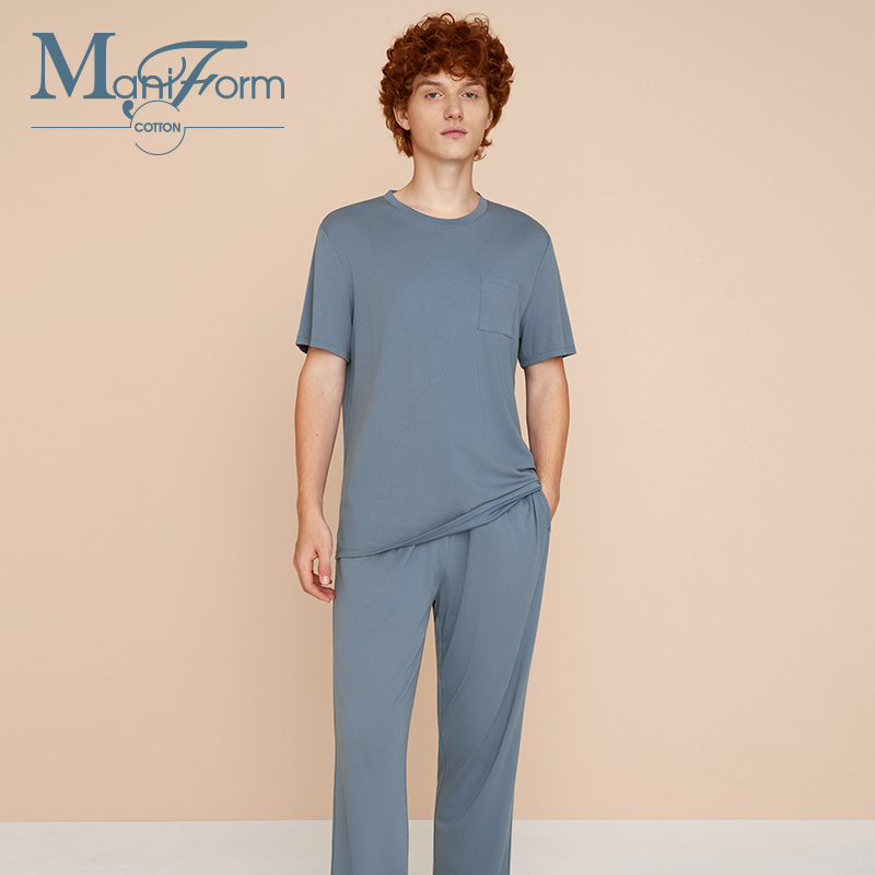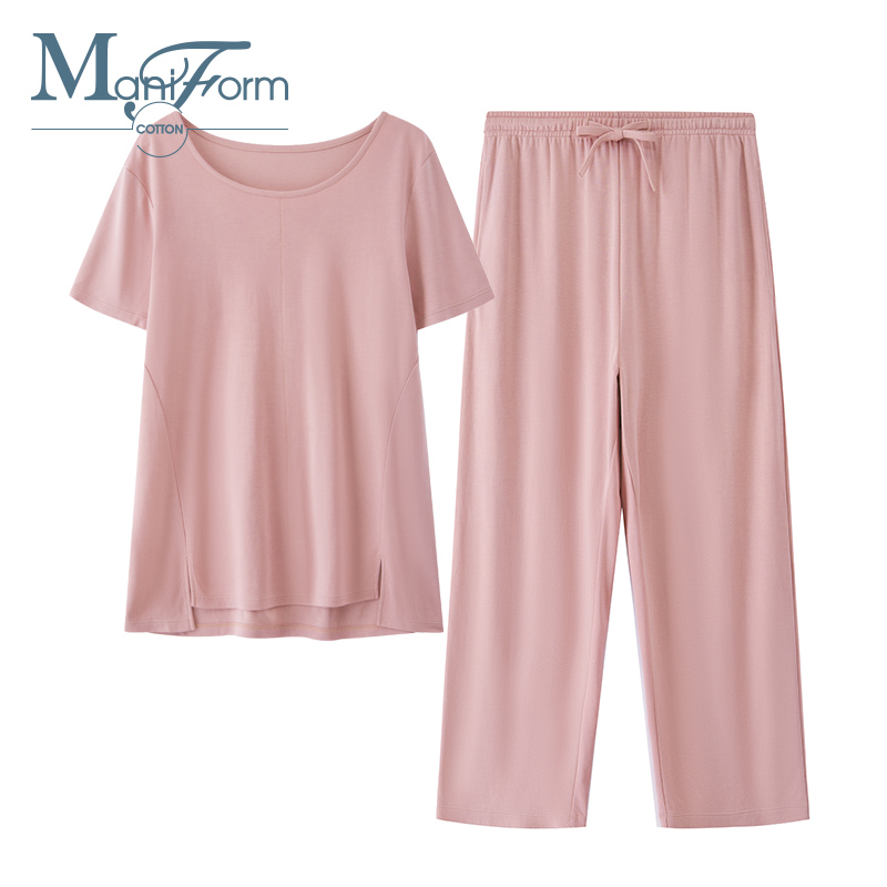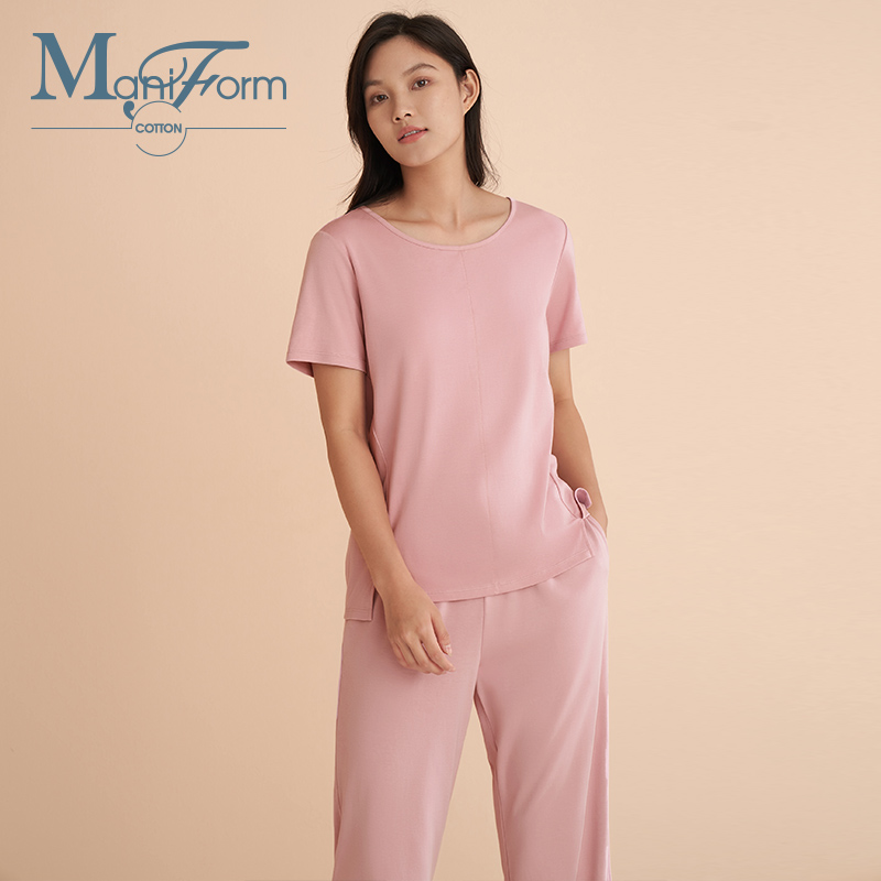 Maniform Cotton Living Cotton Mo Knit Short-sleeved Cropped Pants Round Neck Homewear Suit Couple Pajamas