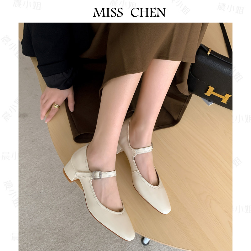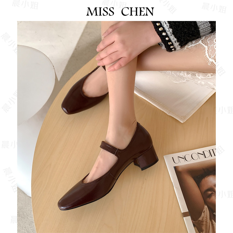(Miss Chen) 2022 new The Row French retro small square head Mary Jane shoes shallow mouth flat shoes women