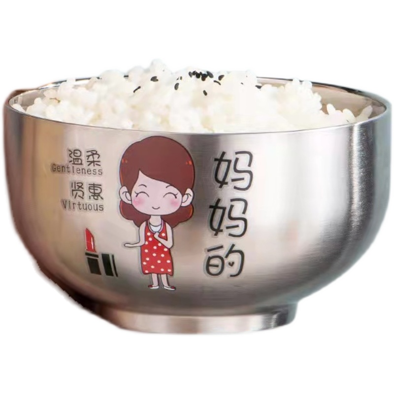 Family card universal 45 mouth 304 stainless steel children baby baby bowl suit for dinner and anti-scalding round bowl