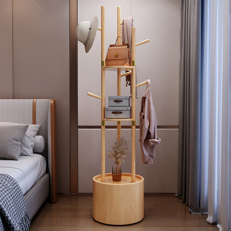 Chinese style solid wood hanger modern minimalist floor-to-ceiling bedroom coat rack household storage cabinet multi-functional clothes rack