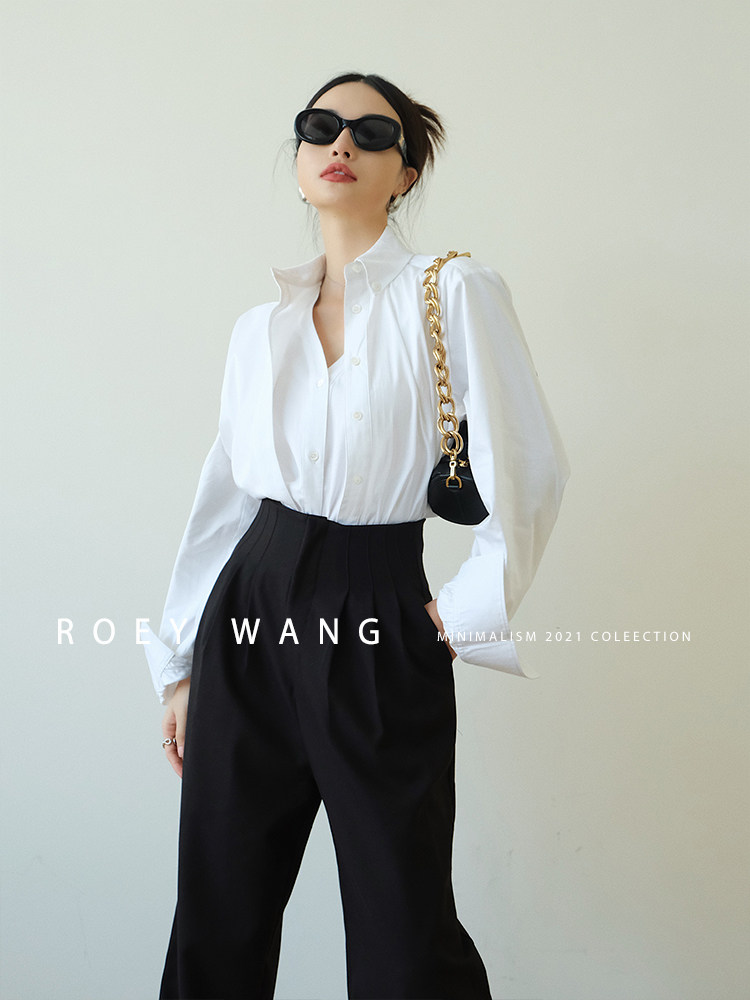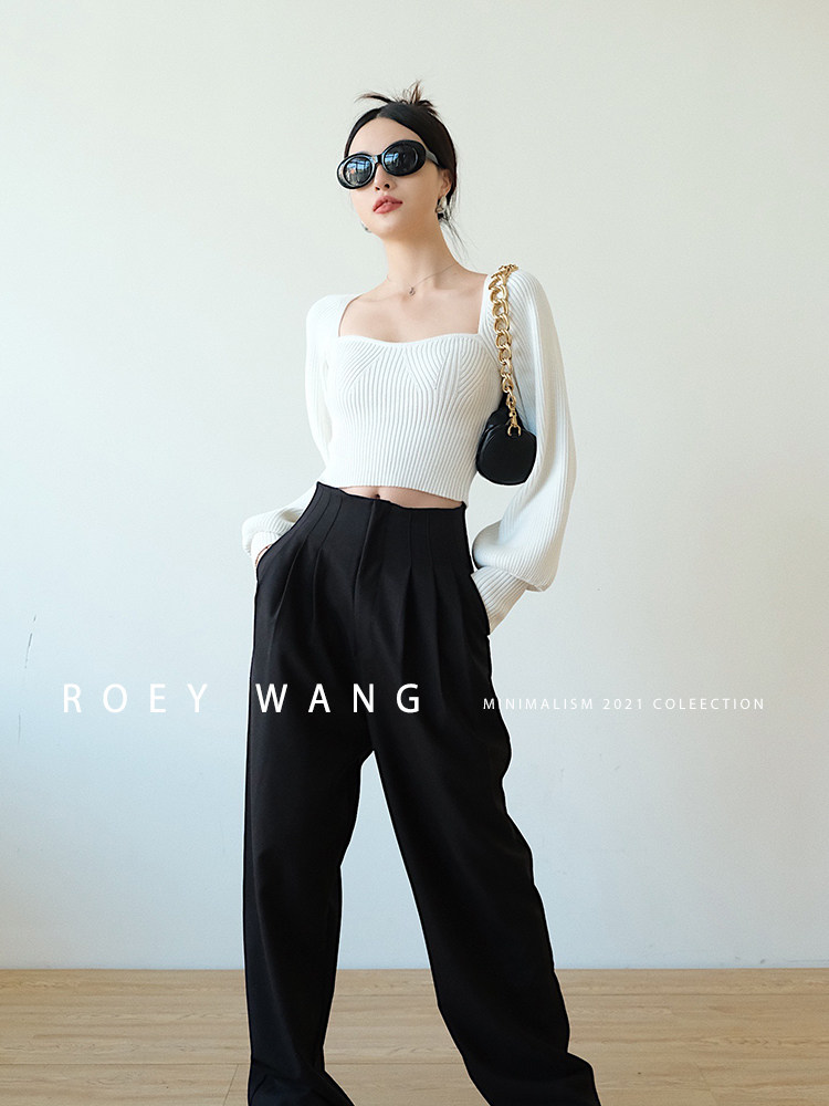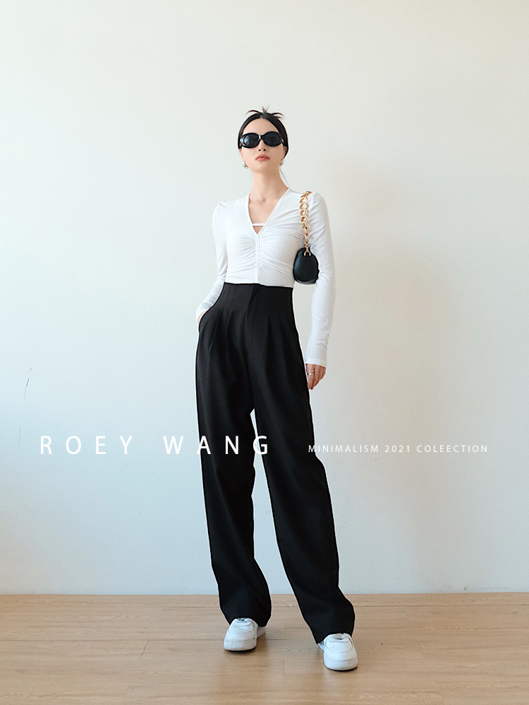 ROEYWANG version jizan autumn Korean version of ins fashionable high waist straight trousers loose slim casual trousers