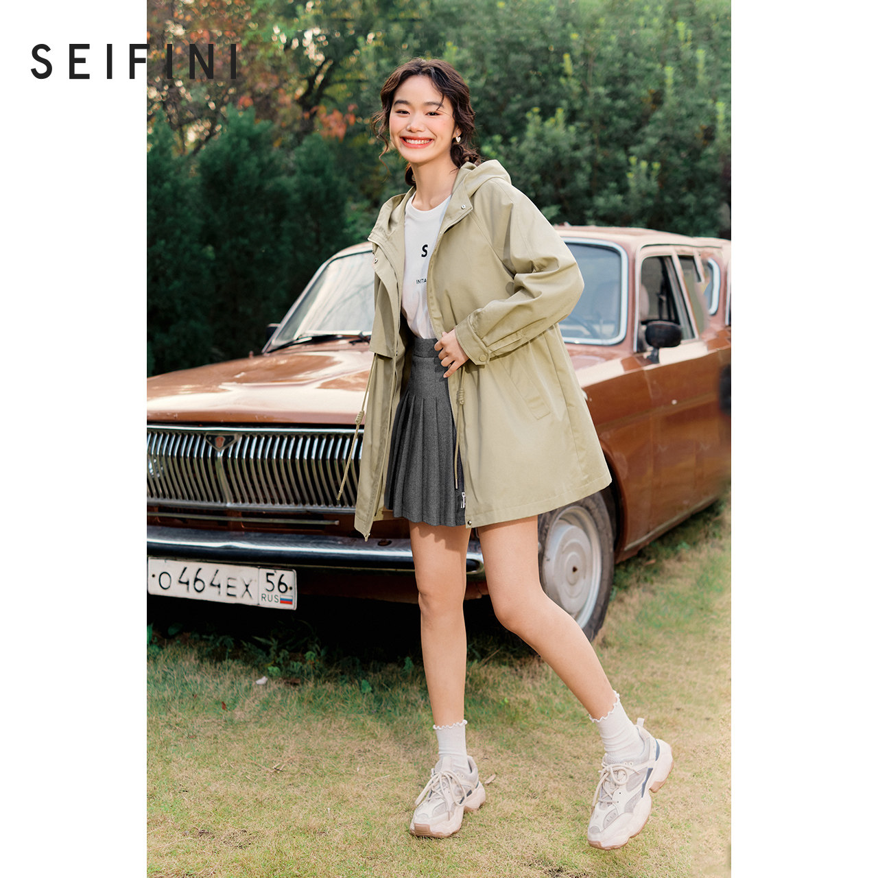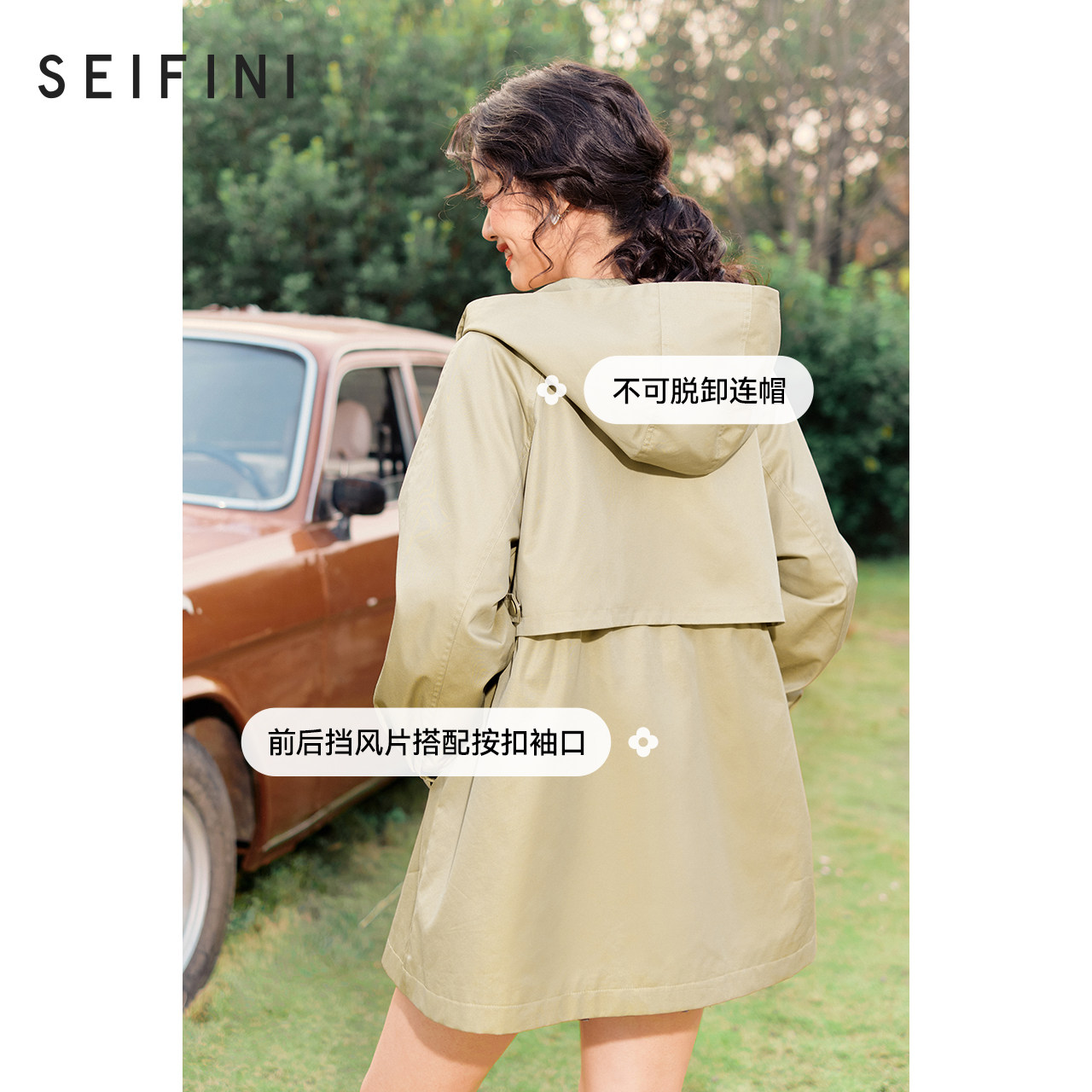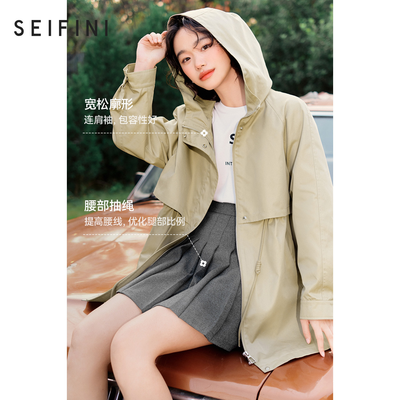 Poetry Fan Coat Jacket Woman 2022 Spring new temperament Relaxed Profile Cashew windproof Lianhood Long version