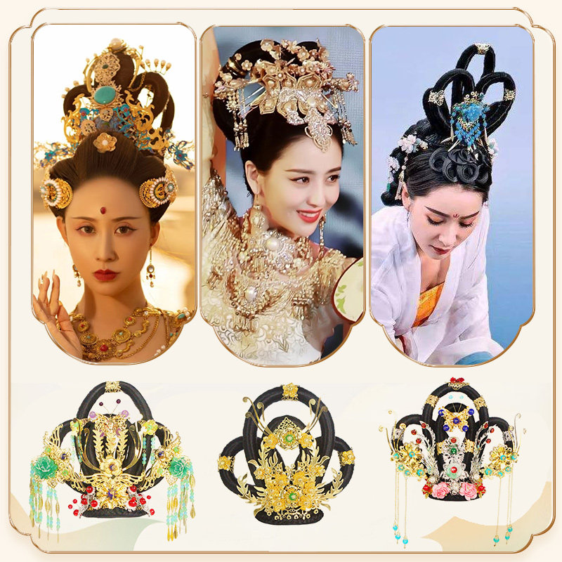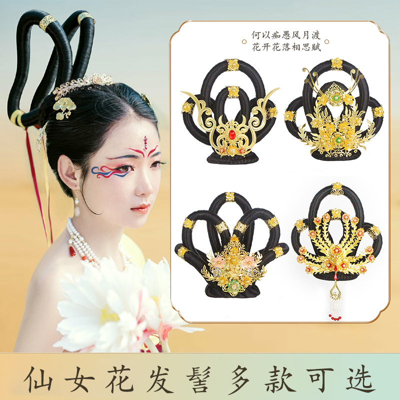 Ancient costume Feitian Chang'e fairy wig headdress Tang Dynasty imperial concubine Dunhuang classical dance style Hanfu Tang-made wig bag