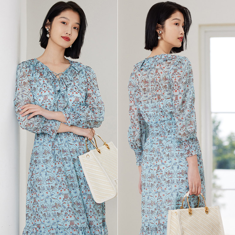 Silk series]EP Yaying women's romantic ruffled waist dress 2022 shopping mall with the same style 4666A