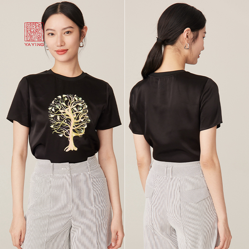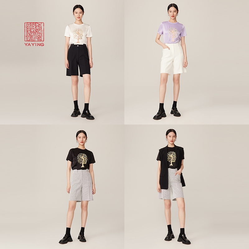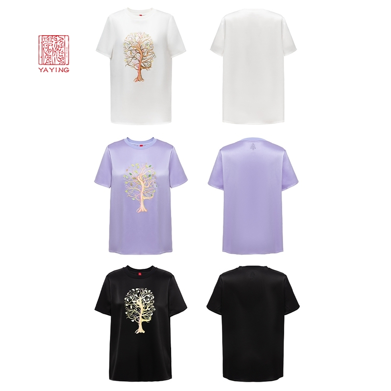EP YAYING Yaying high-end series three acetate texture solid color printing short-sleeved T-shirt 2022 new 5305