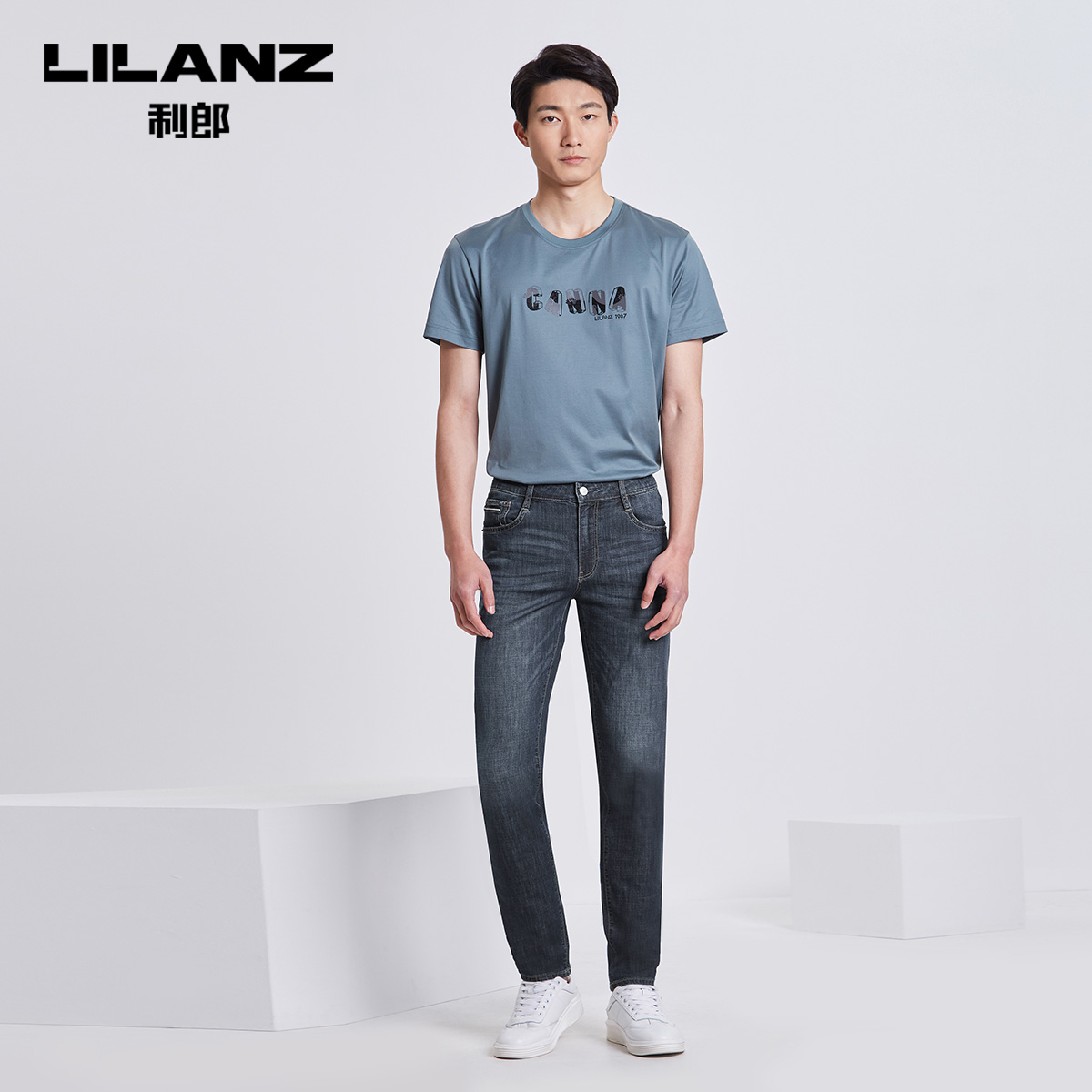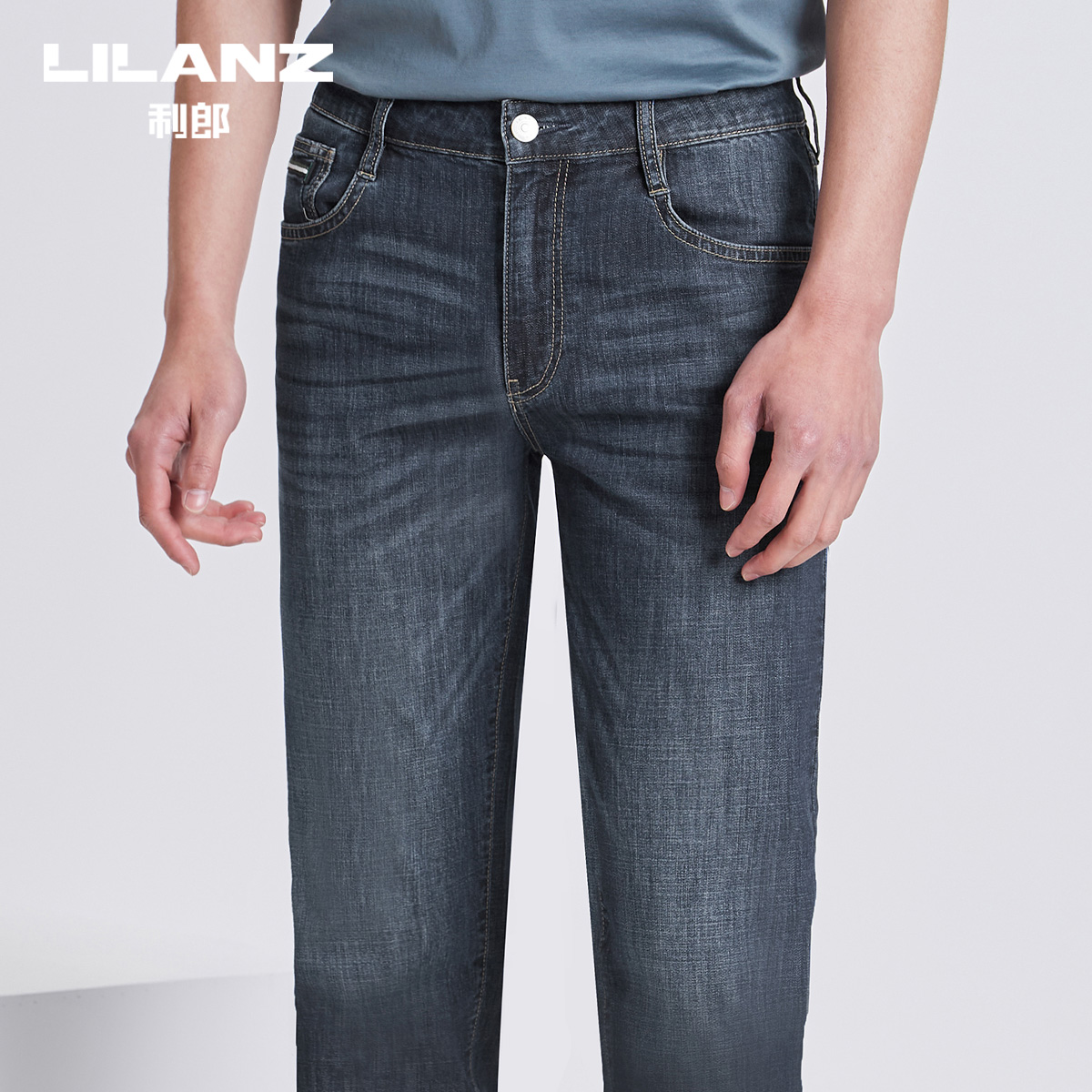 LiLang Official dark blue jeans Men's body Smoke Tubes Pants Elastic Casual 2022 Summer Thin Pants