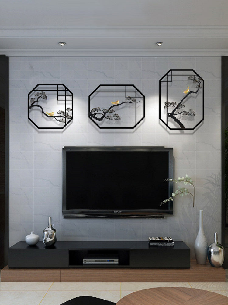 New Chinese style living room background wall decoration restaurant wall hanging study modern wall decoration creative iron art pendant
