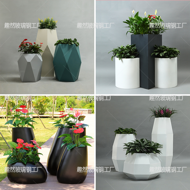 Glass Fiber Flower Pots Custom Mall Park Landscape Ground Floor Large Vase Styling Pendulum minimalist Creative Florator Flower box