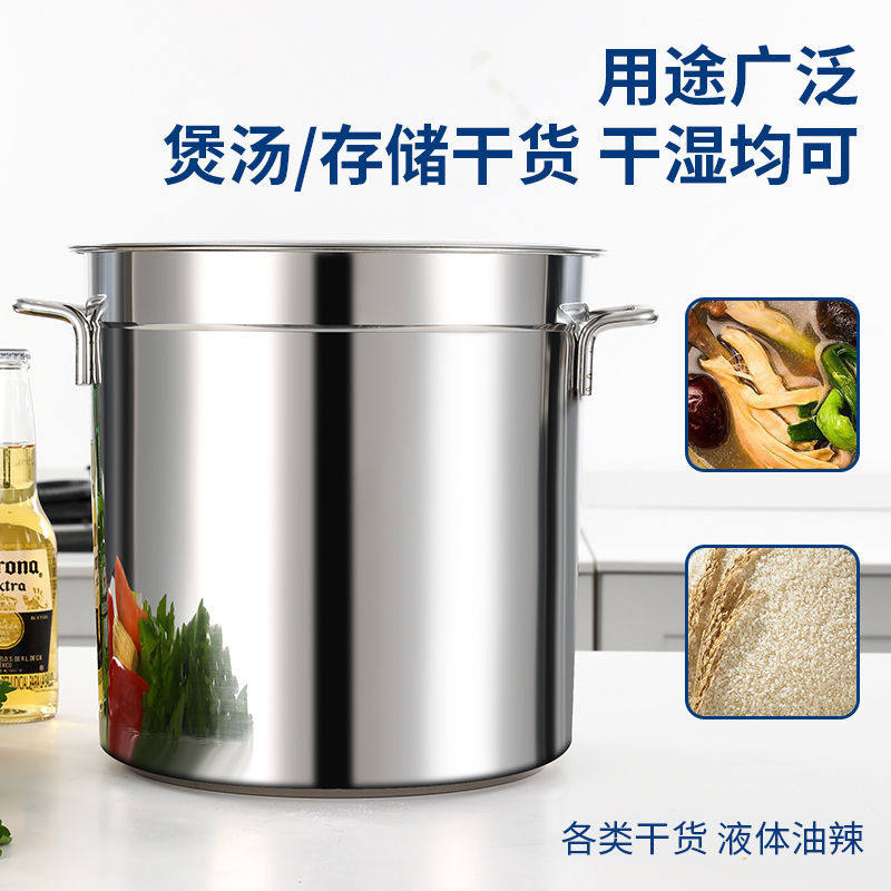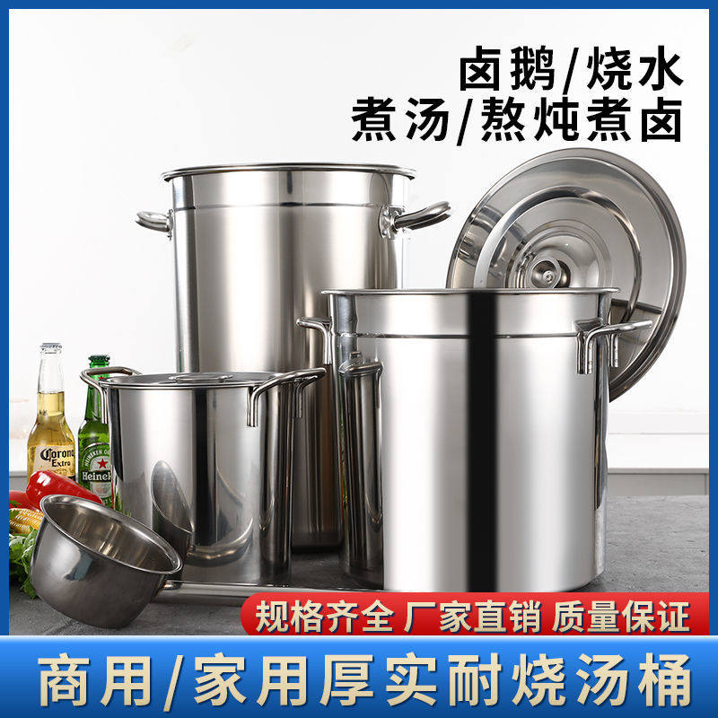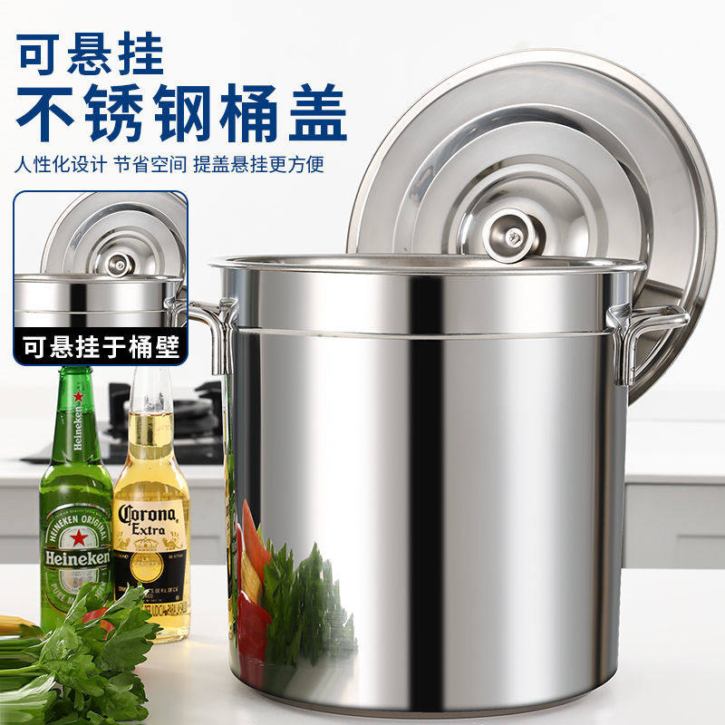 High pot stainless steel barrel with lid induction cookers boiling water small halogen barrel Commercial with lid thickened large-capacity stainless steel stockpot