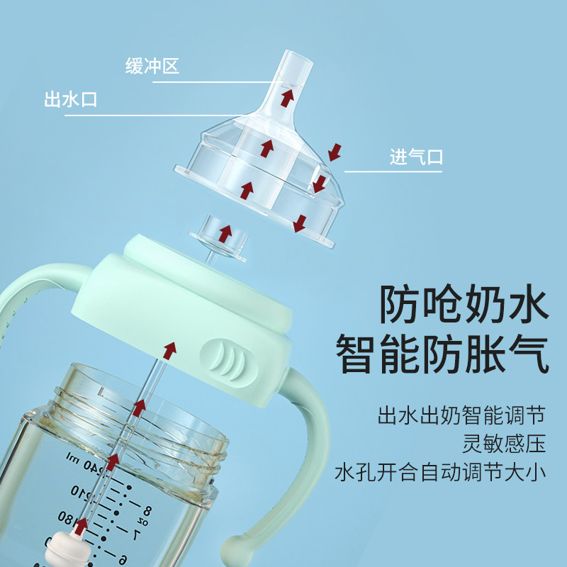 Big baby straw feeding bottle 1 year old 2 years old and over ppsu drop-resistant brand anti-flatulence duckbill straw feeding bottle
