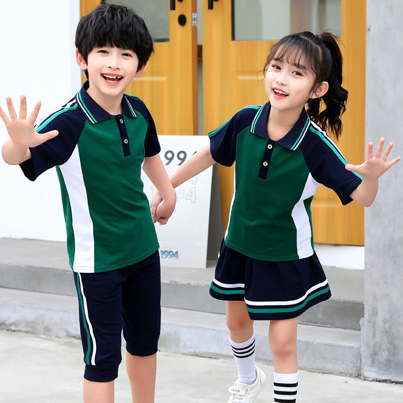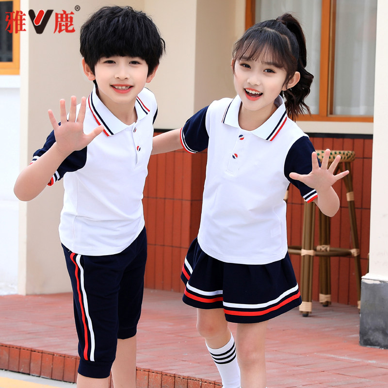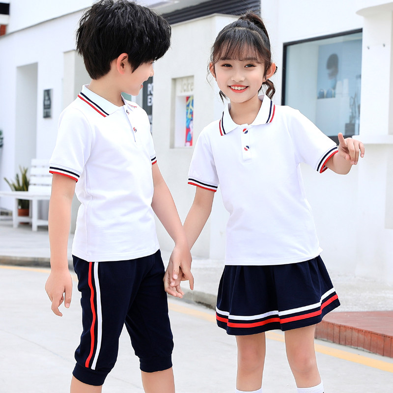 Chinese short-sleeved suits (tops, five-point pants), Chinese short-sleeve suits (tops, skirts), white color-blocking short-sleeves, navy blue shorts, men's white color-blocking short-sleeves, navy blue anti-lighting skirts, women's white matching